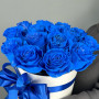 На фото монобукет из 15 синих роз в коробке «ночь и море». В составе: роза (синяя) 15 шт, шляпная коробка (s) 1 шт, атласная лента 2 шт, . Все цветы свежие и ароматные, букет красиво оформлен и отлично подходит для подарка. Доступна доставка цветов или самовывоз.