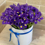 45 фиолетовых ирисов в шляпной коробке в Назарово