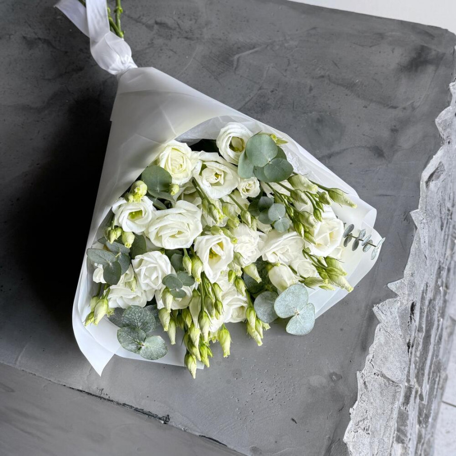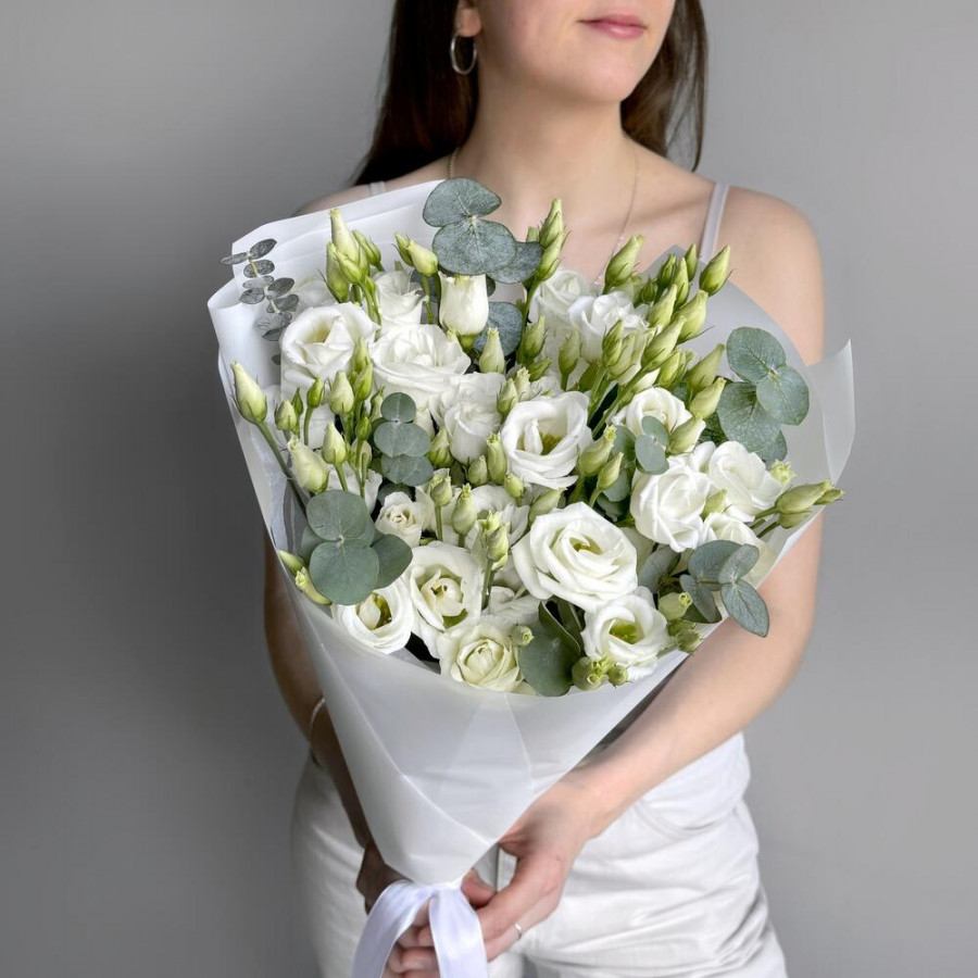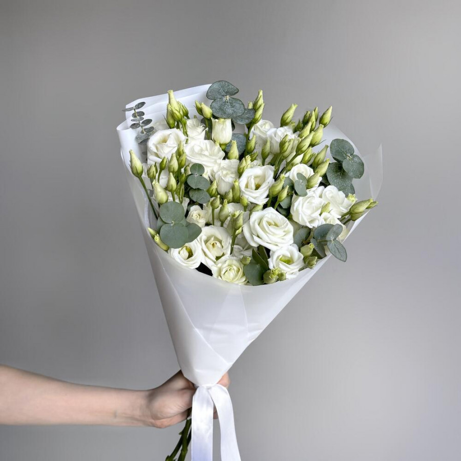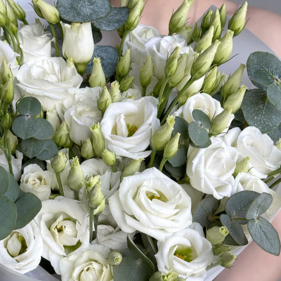 Букет из 7 белых эустом и эвкалипта в Назарово