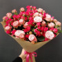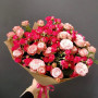 На фото кустовые розы микс. В составе: кустовая роза 15 шт, крафт-бумага 1 шт, . Все цветы свежие и ароматные, букет красиво оформлен и отлично подходит для подарка. Доступна доставка цветов или самовывоз.